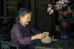En voyage au Vietnam, découvrez les paysages variés du pays, du nord au sud, en passant par les montagnes verdoyantes de Mai Hich, les rizières et villages pittoresques de Ninh Binh, jusqu’aux sites historiques de Hué et Hoi An. À chaque étape, vous serez chaleureusement accueillis par les habitants et partagerez des moments simples de vie quotidienne. De l’apprentissage de la cuisine traditionnelle à la rencontre des artisans locaux, chaque expérience vous rapprochera un peu plus de l’âme du Vietnam. Un voyage inoubliable, où chaque rencontre devient une nouvelle aventure !