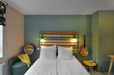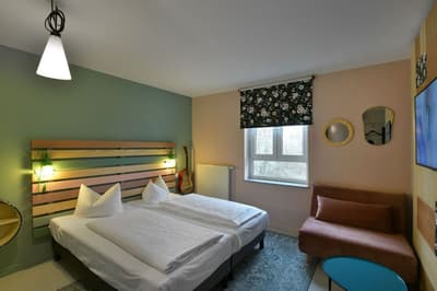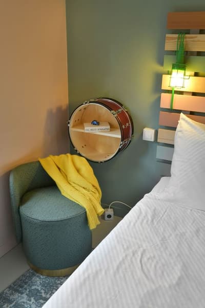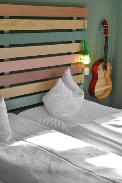 Une baraque de potes, la maison de la tante Olga... : le Birgit de Berlin, c’est un peu tout ça à la fois. Décliné en 53 chambres seulement, l’hôtel du quartier de Mitte – comprenez l’endroit le plus cool de la capitale allemande depuis la chute du mur en 89 — est une délicieuse adresse éco-régressive. Papiers peints aux murs, meubles à tendance recyclée, stores de tissu Liberty : c’est estampillé Woodstock dans une version Flower Power, 2.0 tout de même. Car ne vous y méprenez pas non plus : sous ses allures de boutique vintage, le Birgit est bien ancré dans son présent, avec des valeurs éthiques et écologiques affichées. Dans son jardin, il y a des plantes disséminées un peu partout pour vous rafraichir de vos virées en ville ; dans les assiettes et bols de votre petit déjeuner, c’est bio et local à gogo. Et pour ajouter un peu de coolitude à l’éthique, le Birgit vous propose aussi de la musique. Instruments par ci et ambiance douce par la, le séjour se passe comme ça ! Plus Phoenix ou Cigarettes After Sex que Kraftwerk. Mais tout de même très Hergestellt in Deutschland.