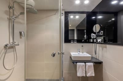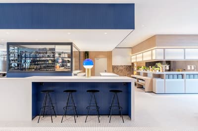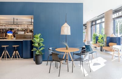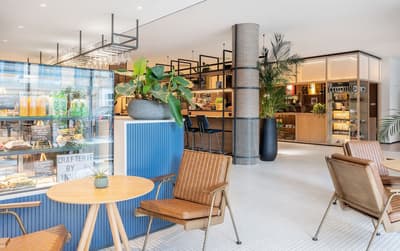 Le groupe Meliá a choisi d’installer son INNSide dans le quartier central de Mitte. L’emplacement parfait pour cet établissement à l’esprit très millennial. A la fois centre historique et touristique, Mitte est devenu un hotspot bouillonnant et cosmopolite. A vous les monuments incontournables, les musées, les galeries d’art moderne et les bars branchés ! A côté du Mémorial du mur, l’INNSide est plutôt bien placé pour sillonner la ville à pied. En plus, le métro est à 50 mètres ! La façade moderne du building n’a rien d’extraordinaire, mais une fois à l’intérieur, le look est tout de suite plus chaleureux. Le hall décloisonné est super agréable avec un camaïeu de blanc et de bleu, une omniprésence de bois clair et une belle luminosité à travers les grandes baies vitrées. Les espaces communs sont user-friendly : méli-mélo de tables en bois, de plantes luxuriantes, de luminaires stylés et de mobilier trendy. Derrière l’étagère à journaux du front desk, le bar vous attend avec son comptoir bleu et son ambiance décontractée. N’hésitez pas à tester le schnaps maison, avec modération bien sûr ! Le restaurant Crafterie, quant à lui, sert une cuisine allemande moderne dans un décor design et aéré. Au 6e étage, vous allez adorer les installations wellness après une journée passée à crapahuter. La salle de sport équipée et le sauna finlandais sont assortis d’une petite terrasse aménagée. Top pour regarder le soleil se coucher !
