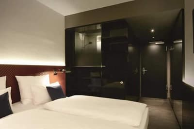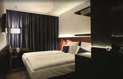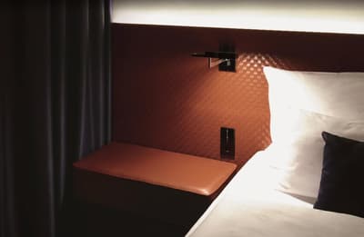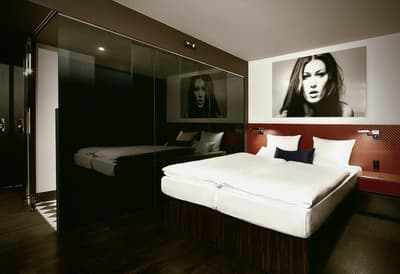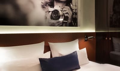 Façade de marbre noir, nom en lettres de feu : vous ne pourrez manquer le Mani, dans le quartier de Mitte ! Une adresse mythique qui mélange tout autant l’histoire que les courants artistiques et alternatifs d’Allemagne et au-delà. Pour cet hôtel pocket, 63 chambres seulement et un esprit entre art et testostérone bien frappé. Des couleurs de nuit et des cuirs patinés, des lumières tamisées et une ambiance cosy qui vous donnent l’impression d’un club plutôt exclusif. Avec un seul espace de restauration, vous prendrez repas et apéros à la même adresse. Un ingénieux système d’éclairage se chargera de faire passer le lieu de mode « matin bonne mine » à celui de « nuits magiques ». Les chambres ? Le Mani s'y cantonne au design minimal. Le parti pris d’une atmosphère très moderne, soutenue par des tons bleu nuit et mordorés, et discrètement équipée de high-tech. Pour relever la déco, quelques photos en noir et blanc taille XXL qui jouent les têtes de lit et soulignent au passage la touche arty de l'hôtel. Et s’il vous prend enfin l'envie de quitter votre cocon doré, sachez que vous serez ici à deux pas d’un tas de de choses à voir, à boire et à manger. Eh oui, c’est comme ça, Berlin !