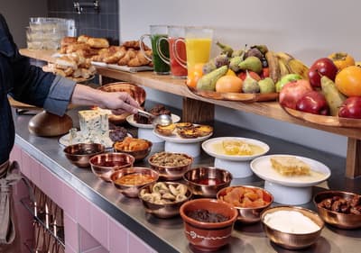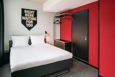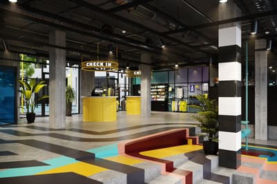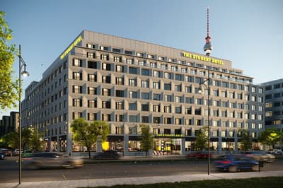 Vous n’êtes plus étudiant ? Don’t worry ! Le Student Hotel accueille locaux, globe-trotters, amateurs de city-break et clients longue durée dans un co-living animé à la sauce berlinoise. Il faut dire que vous êtes dans le quartier über branché de Mitte, le cœur historico-géographique de la ville. Avec l’Alexanderplatz à deux pas et la Porte de Brandebourg à proximité. Vous voulez une ambiance stimulante dans un environnement trendy ? C’est par ici ! Les vibrations funky commencent dès le check-in. Un combo hyper cool d'employés souriants et de bornes jaunes au look futuriste. C’est parti pour la découverte ! L’immense hall décloisonné mélange style indus prononcé, enseignes lumineuses décalées, sièges au design branché et couleurs acidulées. Les différents espaces sont vaguement délimités par des panneaux de verre, des rideaux ou des néons. Côté lounge, banquettes et canapés vous invitent à vous poser. Avec ses tables de ping-pong et de baby-foot, l’aire de jeux est très animée. Les grandes tables de l’espace co-working sont un peu plus isolées. Et la terrasse accueille même un cinéma de plein air pendant l’été. Côté restauration, le Commons est the place to be pour voir et être vu. Banquettes façon diner américain pour le restaurant. Immense comptoir bleu et cocktails à tomber au bar. A partir de là, vous avez le choix : une série d’abdos dans la salle de cardio ou le meilleur espresso-martini de la ville ?