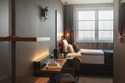Attention : bon plan pour conjuguer environnement nature et établissement branché ! Avec son building flambant neuf, le Niu Bricks est situé à Eppendorf, au nord de Hambourg. A mi-chemin entre aéroport et centre-ville, vous êtes dans un quartier assez élégant avec beaucoup de verdure à proximité. Plutôt cool pour découvrir différentes facettes de la cité ! Vous êtes accueilli avec un large sourire et une vraie convivialité. Comme les autres déclinaisons de l’enseigne Niu, le Bricks vous fait rentrer de plain-pied dans un espace décloisonné au design moderne et aux vibrations décontractées. Ici, le côté loft indus est renforcé par les murs en briques apparentes et la déco épurée. Omniprésentes au rez-de-chaussée, les briques évoquent aussi les façades typiques des maisons du quartier. Dans l’espace lounge, canapés chesterfield et fauteuils design en cuir vous invitent à faire un break sur fond de musique lounge. Côté bar et salle à manger, un méli-mélo de tables en bois et de sièges dépareillés est installé le long des grandes baies vitrées. Un look cosy et soigné agrémenté de coussins, d’accessoires vintage et de plantes en pot. La nature s’invite aussi sur les murs avec les peintures végétalisées du street artist allemand Björn Holzweg. De jolies déclinaisons botaniques que vous retrouvez dans les couloirs qui mènent aux chambres. Pas très grandes, certes, mais hyper confortables, avec une literie à tomber !