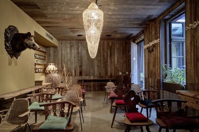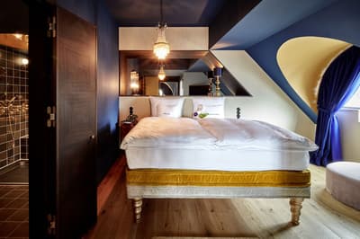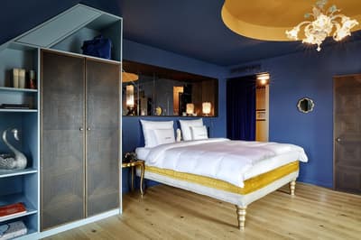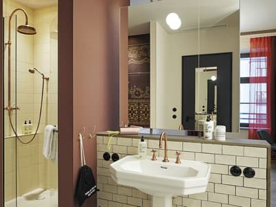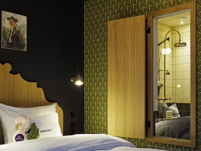 Installé dans un bâtiment historique qui abritait l’ancien service postal et la station de télégraphe royale au siècle dernier, The Royal Bavarian porte bien son nom ! Parfaitement situé, juste à côté de la gare centrale de Munich, c’est le spot idéal pour découvrir l’effervescence de la ville, à la fois dynamique et décontractée. À l’intérieur l’ambiance est aussi chic que relax. La déco originale et atypique mélange style industriel et pièces chinées telles que les vieilles machines à écrire, disposées un peu partout et qui rappellent le passé de cette bâtisse. Des trophées de chasse s’invitent sur les murs du lobby, visible à l’entrée du bar The Boilerman. Vous allez adorer ce lieu, à la fois chaleureux et vivant. Il est fréquenté par les clients de l’hôtel, bien sûr, mais aussi par les Munichois. Ici, le cocktail signature c’est le Highball, un short drink mélangé et préparé sans shaker, comme un clin d’œil aux luminaires en forme de boules qui jalonnent le plafond du bar. Au Neni, le restaurant du Royal Bavarian, la carte propose une cuisine cosmopolite, aux influences orientales : mezze, pitas et falafels à déguster sur de grandes tables façon cantine ou à des tables individuelles. Côté nuit, The Bavarian dispose d’un large choix de chambres, Small, Medium, Large et Extra Large. Elles sont toutes cosy, habillées de têtes de lit en bois, avec du mobilier moderne et des équipements hi-tech. Et dans les salles de bains, le style mêle vasques anciennes et douches à effet pluie. Les Suites aux Cygnes et aux Paons, installées au dernier étage, disposent elles d’un espace salon, parfait pour accueillir les familles. Et elles offrent une vue imprenable sur Munich !