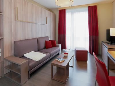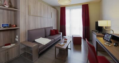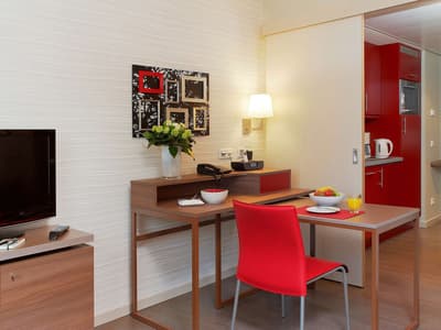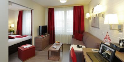 Préparez votre plus beau déguisement de petit chaperon rouge ! Vous devez bien avoir un manteau ou un pull de cette couleur qui traîne dans un coin, non ? Un vieux pull de Noël, par exemple, ça fera amplement l’affaire ! On vous dit ça car le rouge, c'est littéralement la marque de fabrique des Aparthotels Adagio : si vous avez déjà séjourné dans l’un d’eux, vous avez sûrement eu du mal à passer à côté. Comme ça, cette fois, vous ne serez pas simplement spectateur mais également acteur ou actrice assorti·e. Au cœur de la ville de Munich, à deux pas de la gare centrale, cet Aparthotel fait tout pour que vous vous sentiez comme chez vous. Bon, ne vous mettez pas à accrocher vos cadres et vos posters non plus. Mais entre le bureau, la cuisine entièrement équipée pour les chefs étoilés en devenir et la chaîne hi-fi (pour écouter l’album Red de Taylor Swift, histoire de rester dans le thème), vous allez prendre vos aises en un temps record ! Ok, la connexion Wi-Fi est assez faiblarde (personne n'est parfait !), mais vous avez droit à une salle de sport et à un petit-déjeuner succulent tous les matins. La maison, en encore mieux ! Allez, vous n’avez plus qu’à enfiler vos chaussons et c’est parti.