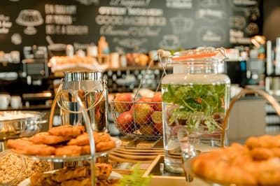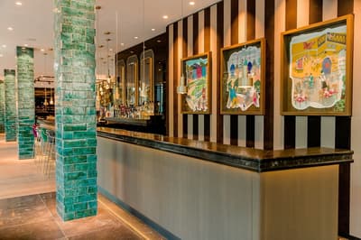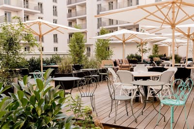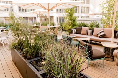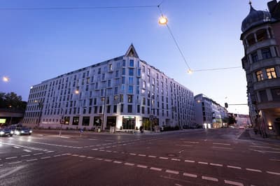 Comme à la maison ! Au cœur du quartier français de Haidhausen, cet hôtel vous donnera l’impression de ne jamais avoir quitté l'hexagone. Pratique pour celles et ceux qui auraient le mal du pays de temps à autres ! Récemment ouvert (en 2019, précisément !), il fait resplendir le turquoise propre aux hôtels du groupe Motel One. Du bar à gin en passant par les rideaux des chambres, la couleur est omniprésente sur les lieux. Promis, on s’y fait vite. On en vient même à l’apprécier plus que de raison ! Tous les soirs, avant de planifier vos visites pour le lendemain, vous pourrez vous référer aux superbes œuvres d’art du Français Cyril Mariaux, plus ou moins cachées à travers l’hôtel, des chambres au lobby. Entre illustrations et collages, elles représentent différents lieux du quartier de Haidhausen, pour l’instant bien trop peu connu, au sud-est de la ville. Faites donc ça au bar, il est absolument splendide ! Asseyez-vous dans un fauteuil des plus confortables, prenez-vous un verre en faisant le débrief de la journée et planifiez le lendemain dans la plus chaleureuse des atmosphères. Allez, l’Orleansplatz et la Belfortstraße n’attendent que vous !