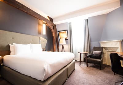 Si les voyages dans le temps vous ont toujours fasciné, vous allez adorer le DoubleTree by Hilton ! Cet établissement atypique vous fait constamment naviguer entre splendeur du 19ème et design contemporain. Il a fallu plusieurs années pour rénover les deux bâtiments classés. Le plus ancien date de 1883 et abritait le très sélect Liverpool Conservative Club ! Des éléments majestueux témoignent de l’histoire du lieu : colonnes en marbre, sols en mosaïque italienne, vitraux finement restaurés et magnifiques escaliers. Sur Sir Thomas Street, l’entrée principale donne sur un lobby résolument moderne. Vous y êtes chaleureusement accueilli avec un grand sourire et des cookies. Une façon bien agréable de découvrir les lieux. D’autant que le personnel est ravi de vous faire faire le tour du propriétaire. A commencer par le salon-bibliothèque du premier étage. Une jolie pièce lambrissée à l’ambiance raffinée. L’endroit parfait pour une tasse d’Earl Grey ! Le restaurant est tout aussi cosy avec ses banquettes bleues et ses fauteuils en cuir. On vous recommande le buffet du petit-déjeuner ! Si les ascenseurs ont un petit look antique, les chambres, quant à elles, sont plutôt sophistiquées. Un camaïeu de tons neutres et de boiseries crée une ambiance apaisante. Les salles de bains en marbre noir sont tout aussi élégantes. Avant de plonger dans la découverte de la ville, allez donc piquer une tête dans la piscine du spa eforea !