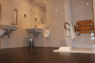 Dans un style plutôt minimaliste et soigné, elle comprend un mobilier classique, des tableaux ornant le mur et se complète dans des tons gris. La chambre est dotée de lits jumeaux confortables et la salle de bains élégante est équipée d’une baignoire avec douche ou d'une douche à l'italienne. Le tout dans une atmosphère détendue !