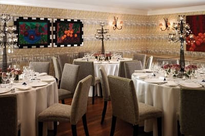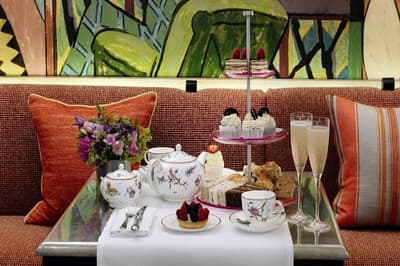Envie d’une escapade londonienne entre raffinement et tradition ? Le Charlotte Street coche toutes les cases de l’hôtel de charme à la britannique. Situé dans une rue hyper calme, à quelques minutes de l’ébullition d’Oxford Street, l’endroit porte la signature de la célèbre designer anglaise Kit Kemp. Un style accueillant et cosy avec en fil rouge des œuvres originales de membres du Bloomsbury Group, un mouvement d’artistes influents du début du 20ème siècle. Dans le lobby, un immense chat noir de Botero trône devant la cheminée et les confortables fauteuils en cuir. La bibliothèque et le salon attenants vous donnent l’impression d’être reçu chez des amis au goût exquis. Foyers chaleureux, canapés profonds, tissus imprimés et bouquets de fleurs fraîches. Un mix parfait entre modern chic et classicisme anglais. Avec sa peinture murale, le restaurant est une explosion de couleurs vives. Pour goûter au traditionnel afternoon tea dans un décor plus zen, venez donc vous asseoir au bar ou sur la terrasse extérieure. Vous le préférez comment, votre thé ? Version festive avec sandwich à la truffe et macarons ou plutôt healthy et sans gluten ? L’hôtel s’adapte à toutes vos envies. Vous voulez finir la journée sur une séance ciné ? Rendez-vous dans la salle de projection pour du 7ème art grand luxe. Sièges en cuir Poltrona Frau, son Dolby, films récents. A défaut de popcorn, vous prendrez bien une coupe de champagne ?