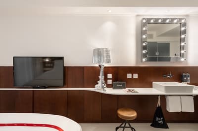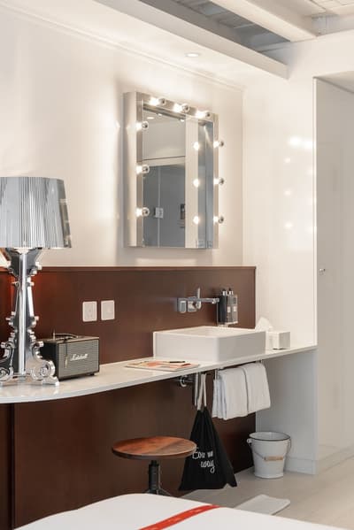 Le luxe sans chichi ! Telle est la devise des Hôtels Ruby. Un concept parfaitement décliné par le Ruby Lucy, première incursion londonienne du Groupe allemand. Pas d’adresse hyper prestigieuse mais une implantation fûtée du côté de Waterloo, près du cœur battant de la ville. Pas de déco clinquante mais une vraie atmosphère, cool et confortable, pour une expérience atypique, un peu en dehors du temps. Tout commence par un self check-in sur iPad. Attention, un personnel hyper serviable est à disposition pour vous aider si besoin ! Dès l’arrivée, vous tombez sous le charme d’un design hyper fun et convivial. Mobilier dépareillé et super coloré, murs lambrissés, planchers en chêne. Autour de vous, une impressionnante collection de guitares et de flippers, d’immenses lettres lumineuses et même des accessoires de cirque. L’espace décloisonné du rez-de-chaussée sert de salon et de café. Good news ! Le bar est ouvert 24h sur 24. Vous y trouvez le meilleur café italien du coin et une belle carte de boissons. Le top pour une soirée animée ! Dans les chambres, le design est nettement plus zen. Quelle que soit leur taille, toutes sont élégantes et lumineuses avec des murs blanchis à la chaux et d’immenses baies vitrées. Certaines ont des balcons avec vue topissime sur le quartier. Les musiciens en manque y trouvent même des amplis Marshall pour brancher l’une des guitares du salon. Rassurez-vous. L’endroit est bien insonorisé !