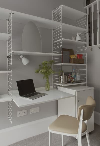 Elle profite d’un petit bureau avec des étagères à cordes pour le rangement et un mur de galerie avec des œuvres d'artistes britanniques locaux. Elle dispose d’un aménagement pratique, que vous soyez en voyage d’affaires ou de loisirs.