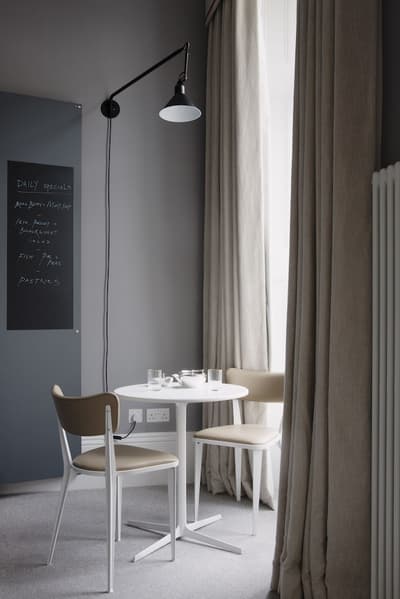 Coup de foudre pour ce 4 étoiles à Notting Hill ! Vous êtes tombé sous le charme du quartier avec le film ? Vous serez forcément séduit par le Laslett. Baptisé du nom du créateur du célèbre carnaval local, l’hôtel est en fait une série de 5 maisons victoriennes aux murs blanchis à la chaux, à quelques pas de la station de métro. Dès votre entrée dans les lieux, vous êtes surpris par le côté à la fois moderne et accueillant de la décoration. Le lobby est composé de différents petits salons qui vous donnent l’impression d’entrer dans un intérieur privé, aussi lumineux qu’élégant. Parquets en bois de chêne, palette de gris et de blancs et mobilier très stylé. Les œuvres d’art sur les murs et dans les vitrines reflètent la collaboration de l’hôtel avec artistes et designers locaux. Un joli coin bibliothèque regorge de livres de design. Tout est conçu avec goût pour donner une impression haut de gamme décontractée. A l’image du bar Henderson avec sa ravissante terrasse extérieure. A la belle saison, vous pouvez y grignoter ou boire un verre à l’ombre des parasols et des oliviers en pot. On vous recommande le petit-déjeuner et son incontournable toast avocat-œuf poché ! Dans les chambres, vous retrouvez la même impression lumineuse et aérée. Les couleurs sont douces. Les murs gris sont rehaussés de quelques tableaux disposés à la tête du lit. Meubles vintage et livres de poche Penguin apportent une touche authentiquement British.
