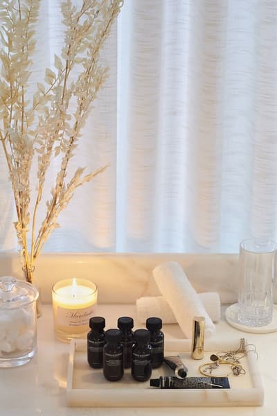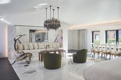 Dans un design somptueux, elle dispose de hauts plafonds avec des lustres vintage, des planchers de bois franc et des œuvres d'art uniques créant un espace évocateur. La chambre est dotée d’un lit king size avec des draps italiens exclusifs et la salle de bains en marbre attenante est équipée d’une baignoire avec double vasque. Le tout dans une ambiance cosy !