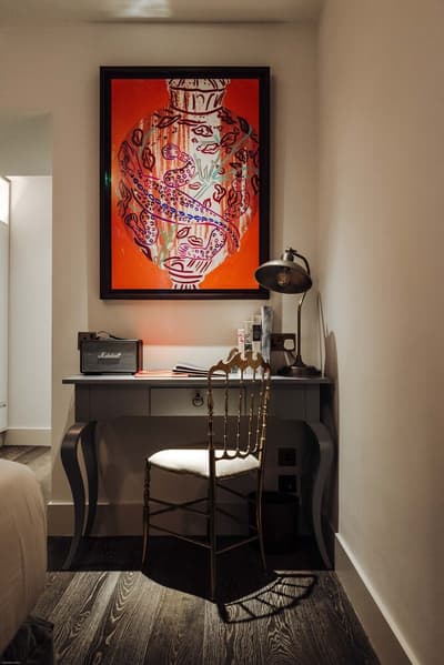 Magnifique, incroyable, féérique… les qualificatifs manquent pour décrire ce 5 étoiles implanté au cœur du West End. Distingué comme l’un des meilleurs hôtels d’Europe et plébiscité par la Jet Set, le Mandrake réserve bien des surprises ! Un couloir sombre vous permet d’accéder au superbe hall. Vous voilà parti pour une expérience immersive entre design de luxe et immense cabinet de curiosités. Lustre-chandelier, murs de béton, sols noirs et canapés en velours. Partout des œuvres d’art éclectiques appartenant à la collection privée du propriétaire. Sous vos yeux, un mélange excentrique de couleurs, de motifs et de textures où chaque détail a été subtilement pensé. Un espace bibliothèque rassemble une collection de livres d’art. L’immense bar principal est surmonté d’une créature fantastique, mi kangourou mi paon. Tout autour, des masques africains et des sculptures étranges. Tout est fait pour vous faire perdre vos repères. A l’image de la fabuleuse terrasse extérieure. Comme un atrium luxuriant environné de jardins suspendus. Ça sent le jasmin et la passiflore. Difficile de croire que vous êtes à Londres ! Un petit bar extérieur en bois vous permet de savourer des cocktails maison dans cette incroyable oasis urbaine. Côté bien-être et détente, cet endroit unique ne propose rien de classique ! Mais si vous êtes fan de nettoyage énergétique et de rituels chamaniques, vous êtes vraiment au bon endroit !