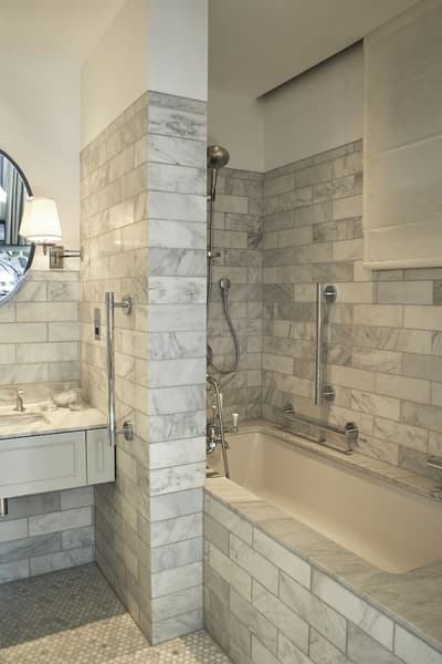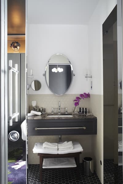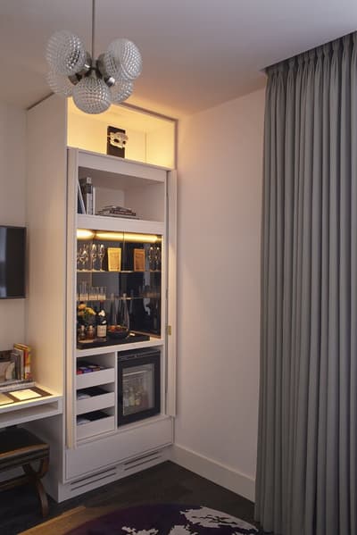 Généreuse et moderne, elle comprend un mobilier haut de gamme, de beaux rideaux et des touches sur mesure qui mettent en valeur ce parfait pied-à-terre. La chambre est dotée d’un lit king size et la salle de bains en marbre attenante est équipée d’un double vasque et d’une baignoire. Le tout dans une ambiance cosy !