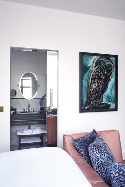 Cette luxueuse chambre surplombe Newman Street, célèbre pour ses exploits nocturnes à travers les siècles et a été conçue pour refléter l'aube et le crépuscule.