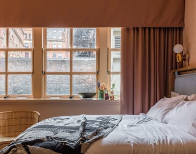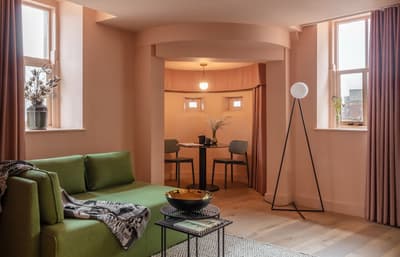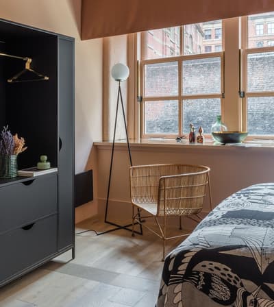 Central, stylé et franchement unique : vous allez tomber sous le charme de l’univers coloré et trendy de l’hôtel Whitworth Locke, à deux pas des meilleurs spots de Manchester ! Ces murs en briques rouges et l’entrée en fer forgé blanc abritaient une usine de coton au XIXe siècle. Donc vous êtes en plus dans un exemple parfait de l’appropriation du patrimoine industriel de la ville pour en faire une vraie pépite lifestyle ! A l’intérieur, on circule sous cette verrière élégante avec toujours les briques au mur. Check-in et hop, direction vos appartements. Car oui, ce ne sont pas des chambres ici, mais bien de vrais studios et apparts où vous posez vos valises ! Quand on rentre, effet wow garanti. On se croirait dans un magazine de déco ! Murs rose saumon, meubles green, feuilles de monstera, miroirs et luminaires style Art déco : on est sur du high level sur l’échelle du trendy instagrammable ! Très scandi moderne. La cuisine noire vient trancher dans cet univers coloré, et dans les salles de bain, on kiffe le gros carrelage rose ! Et en plus d’être pratiques, elles sont aussi très confortables, ces salles de bain… Et quand vous aurez fini de faire des photos, profitez des espaces communs franchement canon ! Si vous êtes digital nomads, ça va être le paradis pour vous avec les espaces de coworking sublimes proposés, avec un bar sous une véranda, un coffeeshop pour prendre le breakfast et un resto végétalisé ultra-tendance… Avec même une cour intérieure pour chiller. Autre point fort : une salle de sport bien équipée et assez grande où on peut suivre des cours de fitness plutôt cool. Bref, tout ce qu’il faut pour profiter de Manchester et éliminer les excès dans les pubs. Une adresse top pour les voyages entre amis !