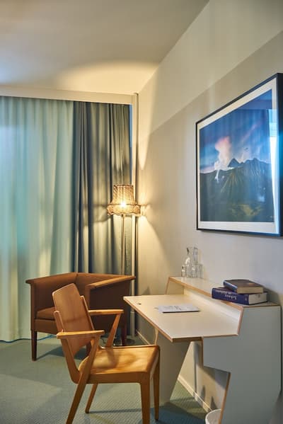 Petite, mais confortable, cette belle chambre a tout ce qu’il faut pour un séjour agréable. Idéale pour les voyageurs solos, elle accommode un lit simple et dispose d’un petit bureau. Salle de bain chic.