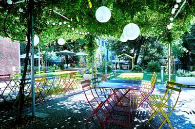 Avec 16 nationalités et 20 langues parlées, l’hôtel Magdas a tout d’une tour de Babel ! Basé sur un modèle de « social business », il emploie une vingtaine de réfugiés, tous originaires d’horizons différents et avec des cultures et points de vue aussi variés. Plus qu’un hôtel, Magdas s’instaure comme un tiers-lieu de Vienne où les rencontres s’opèrent, les débats fusent et l’ambiance est super conviviale. Idéal pour les groupes d’amis ouverts aux expériences. Avec leurs lits superposés, les chambres pour 4 personnes vous rappelleront vos plus beaux voyages scolaires de primaire. A l’intérieur : le strict nécessaire mais peu importe. Vous ne viendrez pas ici à la recherche du confort, vous passerez si peu de temps dans votre chambre que vous n’en aurez pas besoin. Au contraire, vous irez plutôt siroter un jus sur la terrasse, bronzer dans le jardin et profiter des environs. A quelques minutes à pied, vous trouverez le parc Prater, où vous pourrez courir au milieu des locaux, vous balader en fin de journée mais surtout découvrir la fête foraine permanente et sa fameuse grande roue de 65 mètres de haut. Un véritable bol d’air frais en plein cœur de la ville, vous y croyez ?