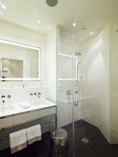 Très agréable, elle a tout le nécessaire pour un séjour des plus confortables. Encore plus spacieuse, elle accommode un grand lit et dispose de beaux fauteuils dans le coin salon. Salle de bain chic avec douche à effet de pluie.