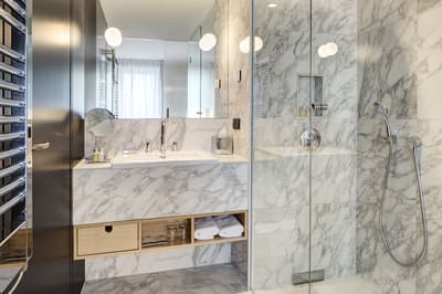 Superbe ! Installée en duplex, c’est absolument confortable. Elle accommode un grand lit et le salon est meublé de beaux fauteuils et d’un canapé et de beaux fauteuils. Salle de bain avec baignoire et douche à effet de pluie.