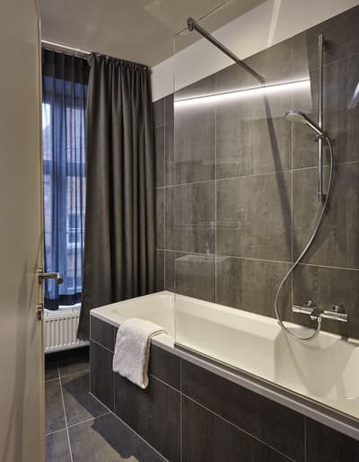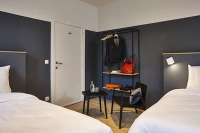 Vous aimez les endroits historiques et authentiques ? Difficile de faire mieux que ce 4 étoiles ! L’hôtel s’est installé sur l’emplacement de la plus ancienne brasserie répertoriée à Bruges. Son cadre est très romantique, juste au bord d’un canal. Un peu en retrait de l’agitation mais très proche du centre-ville. Avec son toit pointu et ses pierres apparentes, la façade du bâtiment a beaucoup de charme. L’intérieur a été joliment rénové et arbore aujourd’hui un look à la fois moderne et sophistiqué. Quelques éléments d’origine ont été conservés à l’image du magnifique escalier en bois et fer forgé que vous apercevez dès l’accueil. Dans les parties communes, portes et fenêtres anciennes et hauts plafonds à moulures sont soulignés par une déco un brin épurée. Un mélange de bleus très apaisant dans le joli salon d’accueil avec cheminée. Juste à côté, vous trouvez la salle du petit-déjeuner avec son bar carrelé de noir. L’ambiance y est plus design avec luminaires stylés et photos en noir et blanc. Mais ce qui attire votre attention, c’est la sublime vue sur le canal à travers les baies vitrées ! Aux beaux jours, vous pouvez siroter votre café sur une petite terrasse au bord de l’eau. Le cadre est enchanteur pour démarrer la journée. Les chambres jouent la carte de la sobriété mais elles sont fonctionnelles et parfaites pour décompresser. Envie de vous sentir zen et relaxé ? Il y a même des cours de yoga gratuits !