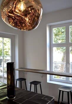 D’une simplicité exquise, elle est vraiment cosy. Dominée de blanc, elle est résolument design. Elle laisse pénétrer la lumière naturelle pour une pièce lumineuse et accueillante. Le mélange de bois, de métal et de verre rend l’ensemble élégant.