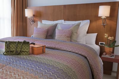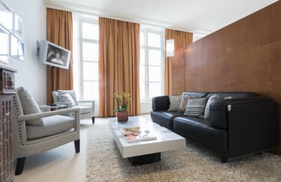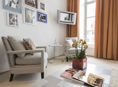 Cette belle chambre a tout ce qu’il faut pour un séjour agréable et confortable. Elle baigne dans une atmosphère sereine et reposante. La grande porte-fenêtre profite d’une belle vue. Elle accommode un grand lit et dispose de beaux fauteuils dans le coin salon. Salle de bain avec baignoire et douche à effet de pluie.