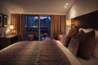 Envie d’une escapade romantique dans la Venise du Nord ? On a exactement ce qu’il vous faut ! Cet hôtel multirécompensé a l’un des plus beaux emplacements de Bruges. Avec une magnifique terrasse en bord de canal. Et ce n’est pas tout ! Vous êtes dans un bâtiment historique dont les origines remontent au 18ème. Un manoir superbement restauré par les propriétaires eux-mêmes. Le résultat est un mélange aussi éclectique qu’élégant de détails anciens, de design contemporain et d’esthétique italienne. Vous êtes reçu avec un cocktail au champagne et une gentillesse exquise. Le hall d’entrée est saisissant avec ses statues antiques et ses tentures drapées. Vous voici dans le salon principal. Un décor ultra raffiné dans un camaïeu de beiges et de dorés. Canapés profonds, coussins à profusion, mobilier aux lignes profilées et superbe cheminée. Œuvres d’art et objets design ponctuent l’espace. Un mix très chic de classique, vintage et moderne que vous retrouvez dans la verrière. Un havre de paix lumineux avec une profusion de bouquins et des canapés moelleux. Topissime pour vous poser dans une ambiance végétalisée ! La salle du petit déjeuner joue la carte artistique avec sa juxtaposition de tableaux, ses lustres sphériques et ses chaises aux motifs graphiques. Le bar est impressionnant avec son habillage vert malachite. Mais la star reste la terrasse et sa sublime vue sur l’eau. On parie que vous allez avoir du mal à bouger ?