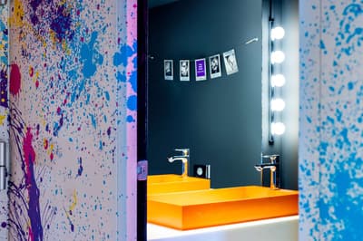 Un établissement branché dans un quartier animé et bien desservi. Un design fun et coloré avec des chambres à la décoration artistique unique. Top pour cartonner sur les réseaux.