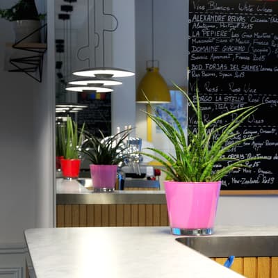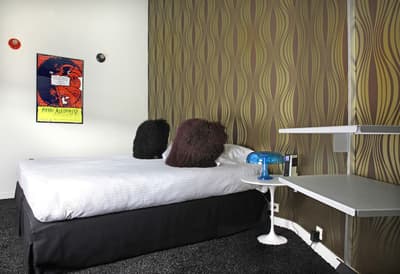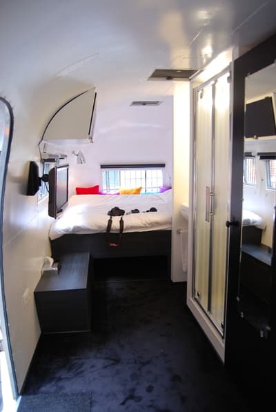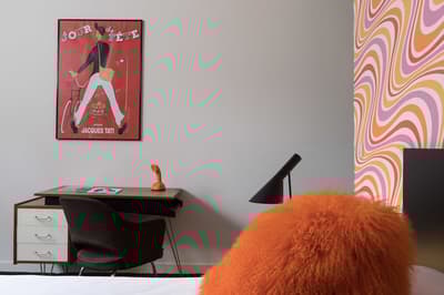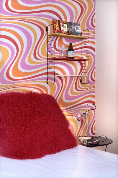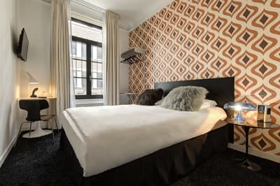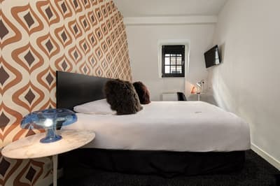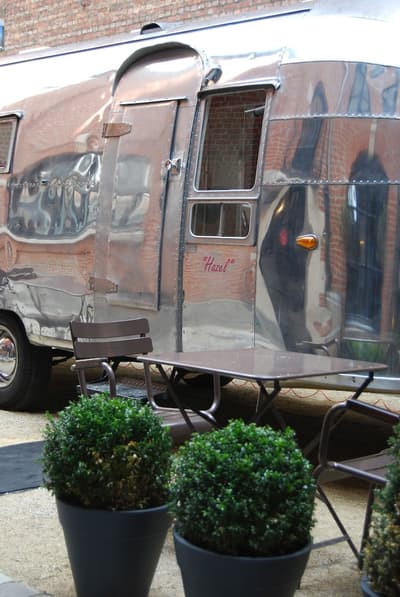 Fan des seventies ? Cet hôtel est pour vous ! Une véritable invitation à remonter le temps dans un endroit atypique, aux portes du centre historique. Niché au fond d’une cour, le bâtiment de briques rouges à l’architecture typiquement bruxelloise n’attire pas forcément l’attention. Mais dès que vous avez passé les grilles d’entrée, vous tombez en arrêt devant l’Airstream ! Un camping-car en acier poli made in USA garé dans la cour. Une fois dans le bâtiment, vous découvrez un grand espace décloisonné. Déco chaleureuse et ambiance vintage avec carrelage flower power et luminaires d’époque. A droite, l’espace café / petit-déjeuner avec ses tables blanches façon bistro et ses chaises dépareillées. A gauche, le Wine bar avec tabourets en métal noir, spots articulés et étagères hyper colorées. La réception est installée à côté, dans une pièce à l’esthétique rétro encore plus prononcée. Mobilier chiné, tableau psychédélique et coussins en fausse fourrure. Aux beaux jours, la cour intérieure est aménagée avec tables, chaises et parasols. Canon pour parcourir la sélection de vins et de bières belges en toute convivialité. A l’étage, les chambres mélangent papier peint funky, couleurs acidulées et tables en formica. Un véritable trip revival dans une ambiance très pop. Vous avez envie de quelque chose d’un peu plus roots ? Vous pouvez louer l’Airstream pour y passer la nuit. Avec quand même la clim, la télé et le Wi-Fi !