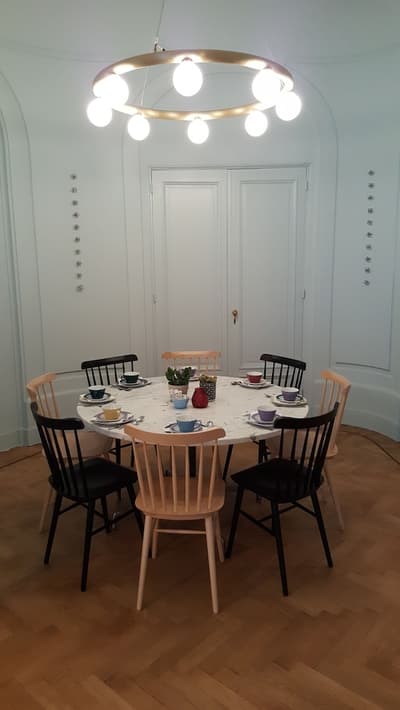 L’ensemble bénéficie d’un style de décoration vintage chic tant dans les accessoires, le mobilier, le papier peint et le parquet. La chambre est dotée d’un lit double, de deux lits individuels et d’un bureau si vous devez travailler. La salle de bains est équipée d’une grande baignoire. Ambiance cosy !