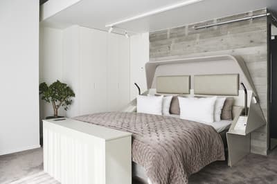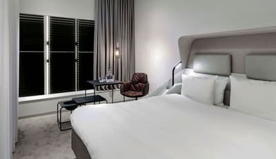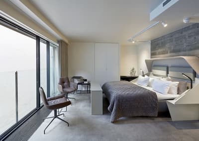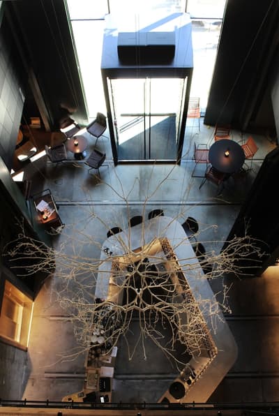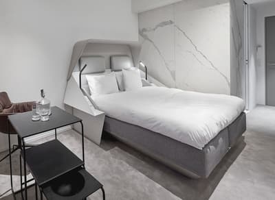 Vous ne passerez jamais une nuit aussi sereine que dans cet hôtel à l'épreuve des bombes ! L'ancien transformateur électrique chargé d'alimenter le centre-ville de Copenhague depuis 1963 a gardé sa coque de béton, maintenant enrobée d'une jalousie de métal. Entrée spectaculaire dans ce hall s'envolant à plus de 12 mètres de haut, dominé par une installation en 3D de l'artiste Pio Diaz : un arbre torturé projetant une immense ombre au-dessus du bar, éclairé par une immense bibliothèque de spiritueux. Visualisez les imposantes bobines, autrefois hissées sur des rails, alignées dans les trois grands salles du bâtiment. Toutes les structures en béton d’origine, les grandes portes en fer, les grands espaces, les rails de fer dans les sols en béton, les passerelles et les escaliers ont été conservés intacts. Dans la partie supérieure, les 31 chambres ont toute été crées en accord avec les éléments architecturaux d'origine. Les lits ont spécialement été imaginé pour cet hôtel, coquille dans la coquille, il évoque une capsule de détente inspiré des sièges d'avions #firstclass. Vendu en 2013 au groupe Kähler Frantz Longhi (les iconiques vases blancs à bandes colorées), le nom de l'hôtel fait référence au fondateur, Herman K.
