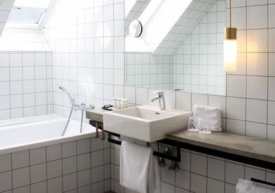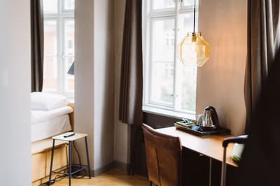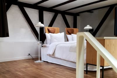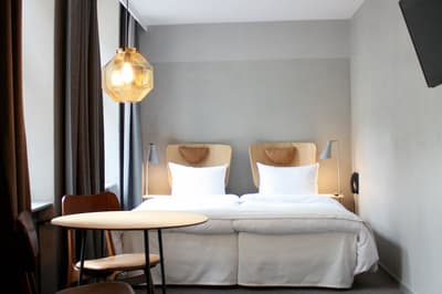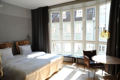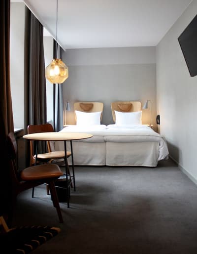 Trois maisons accolées, chacune ayant une architecture et un caractère distinct. Sans l'enseigne SP34, on croirait presque entrer chez quelqu'un. Derrière une façade ne laissant aucun doute sur l'âge vénérable des murs, se cache un design scandinave ultra tendance. Lignes épurées, bois clair, une grande place faite à la lumière naturelle. Un vélo de hipster suédois Sögreni trône à l'entrée, et le salon installé autour d'une cheminée expose temporairement des artistes locaux. Bref, une véritable bulle d'inspiration pour les créatifs ayant un penchant pour le luxe décontracté. Rien ne laisserait supposer non plus les différentes options pour se relaxer après une longue journée, comme la salle de cinéma ou la terrasse du toit. Les 118 chambres vont de la chambre simple et bien agencée au loft à deux étages, poutres apparentes. Le tout dans un style nordique. Vous y trouverez des luminaires fabriqués en Suède et des meubles danois, au design original. Passage Instagram obligatoire. Vous ne pourrez pas partir sans cette iconique photo des têtes de lit spécialement pensée pour le SP34. Libre à vous d'imaginer la meilleure po(au)se !