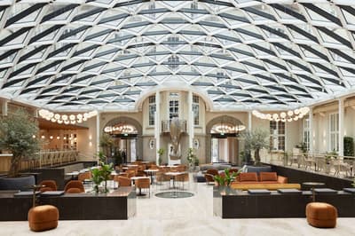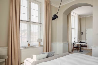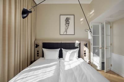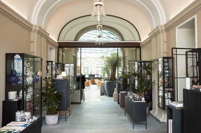 « La nouvelle star de Copenhague » ? Et qui dit star, dit villa. Universal Design Studio a remanié la structure néo-baroque du bureau de la Poste et du Télégraphe, en concevant des intérieurs qui correspondent à la grandeur de la façade du bâtiment. Pour les chambres, le studio londonien a évoqué l'atmosphère d'une demeure citadine danoise et des couleurs aux accents dorés inspirées des peintures du maître du XIXe siècle Vilhelm Hammershøi. Leur suite Universal Penthouse à deux étages, qui comprend un grand escalier en colimaçon en noyer et en acier menant à un espace salon et à la chambre principale. La très convoitée "Earth Suite", conçue par l'architecte danoise Eva Harlou, est équipée de matériaux et de textiles recyclés, ainsi que de meubles écologiques de Mater Design. Shamballa Jewels, une marque de joaillerie danoise qui a conçu les sept autres suites. Quel subtil écrin pour la plus belle collection d'art privée de la ville, estimée à plus de 2 millions de dollars ! Sous la direction du célèbre conservateur d'art Sune Nordgren, les œuvres d'art actuelles exposées comprennent des pièces de talents locaux et d'artistes internationaux célèbres, dont Jaume Plensa, Per Kirkeby et Ian McKeever. Cultures multiples. N'oublions pas l'omniprésence des vastes espaces verts intérieurs et extérieurs pour promouvoir un sentiment de bien-être et de tranquillité.
