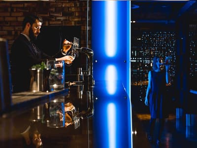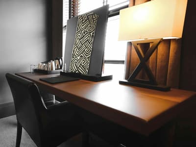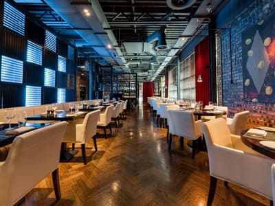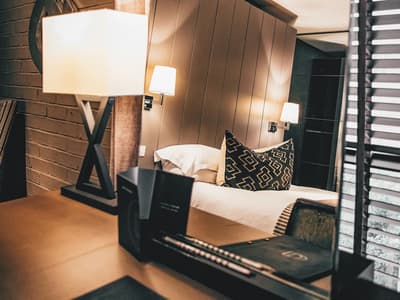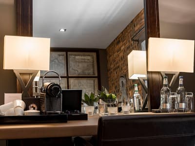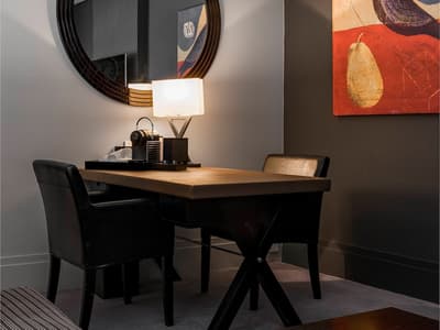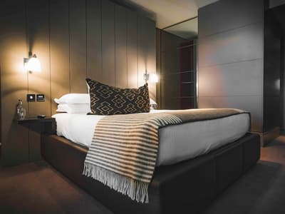 Ne vous fiez pas à l’extérieur de l’établissement ! S’il ressemble plus à un cube de béton qu’à un 4 étoiles, cet hôtel a pourtant pas mal d’atouts dans son sac ! A commencer par son emplacement, certes un peu loin du centre-ville de la capitale écossaise mais bien pratique de par sa proximité avec l’aéroport. Ce qui fait vraiment la différence, c’est l’atmosphère que vous découvrez à l’intérieur : un mélange d’ambiance cosy et de design stylé. Le lobby est un véritable cocon qui superpose lignes indus et chic clubby. Murs en briques, plafonds aux canalisations apparentes, art moderne et fauteuils rembourrés. La faible luminosité est compensée par une profusion de bougies et une grande cheminée. Vous retrouvez la même ambiance élégante au restaurant, tout en longueur. Des panneaux de bois foncé à claire voie délimitent des espaces plus ou moins intimes. Les sièges en cuir alternent le crème et le chocolat. Une collection de photos de stars habille un mur. Les luminaires suspendus donnent un joli éclairage tamisé. Avant de vous attabler, allez donc prendre un verre au bar. L’espace canapé près de la cheminée est particulièrement confortable. En liaison avec le nom de l’hôtel, le thème de l’aérien est décliné dans les parties communes. Avec quelques rappels dans les chambres, parfaites pour cocooner. Tons chauds et apaisants, canapés profonds et matelas king size pour nuit relax. N’oubliez pas de vous réveiller !
