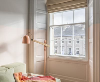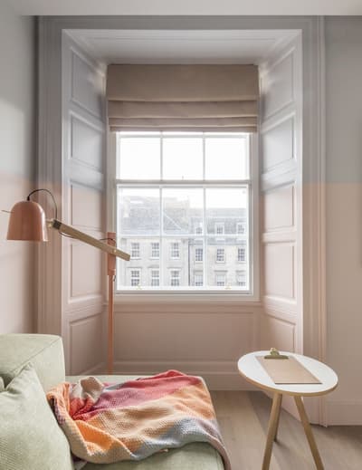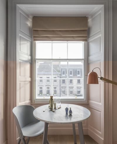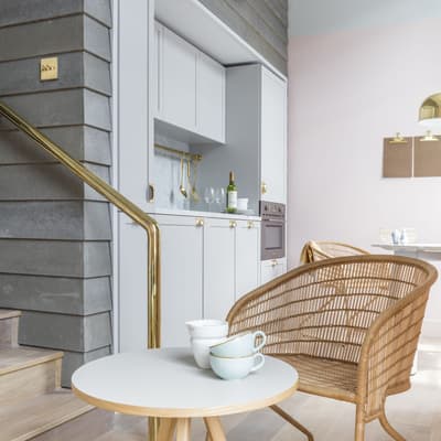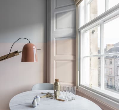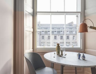 Vous voulez la touche professionnelle d’une réception d’hôtel et le confort d’un appartement ? Le tout en plein centre-ville ? On a pile poil ce qu’il vous faut ! Sur l’une des artères les plus chics d’Edimbourg, l’Eden Locke se niche derrière une grande façade géorgienne. D’emblée, vous êtes plongé dans l’ambiance conviviale d’un lieu cool et branché. Devant vous, un espace aux couleurs pastel qui accueille clients et habitants dans une atmosphère mi détente mi coworking. La déco no frills pensée par un cabinet de design new-yorkais vous transporte dans un univers minimaliste et aéré. A mille lieux de la capitale écossaise. Parquets en chêne, murs vert menthe et détails tendance. Des dizaines de plantes en pot voisinent avec des chaises en osier plutôt stylées et des étagères en laiton. Le traditionnel hall d’hôtel est remplacé par un café / bar très lounge. Le comptoir en marbre a des couleurs de crème glacée. Vous retrouvez les mêmes tons poudrés dans les appartements. Un style un peu scandinave avec un mobilier design et des finitions bien pensées. Une ambiance très douce et de la place pour vous étaler. Le canapé vert avec méridienne est confortable et la cuisine super bien équipée. Vous ne savez pas faire cuire un œuf ? Relax Vous pouvez vous faire livrer ! De plus, les rues aux alentours regorgent de restaurants et le bar du rez-de-chaussée sert un bon petit-déjeuner. Pas de copieux buffets mais un excellent café !