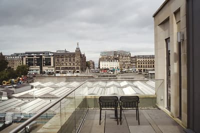 Un établissement qui se démarque par son design moderne et élégant, parsemé de subtiles touches écossaises. Un emplacement au top et un point de vue époustouflant sur Edimbourg.