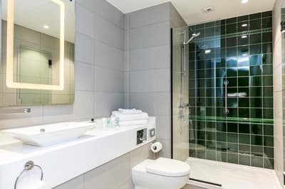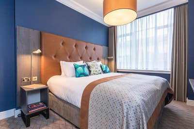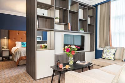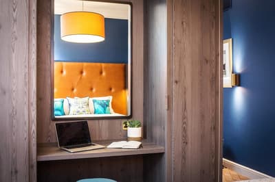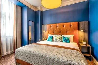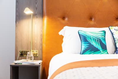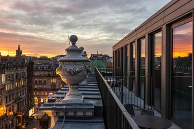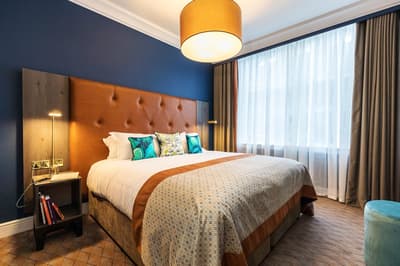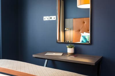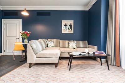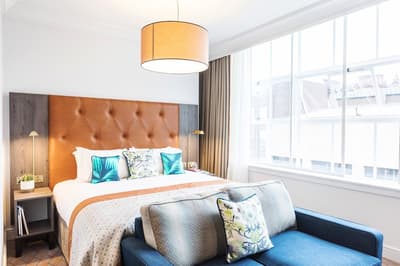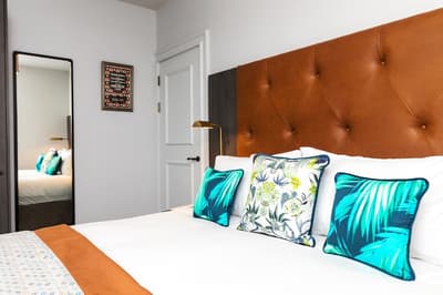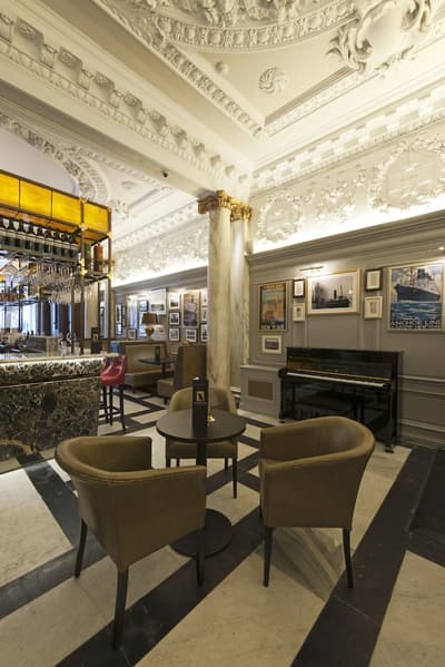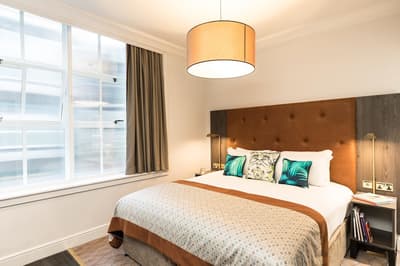 Un appartement en plein cœur de Glasgow. Ça vous dit ? Alors optez pour cet Appart Hôtel. Vous êtes dans l’un des plus beaux bâtiments Art Déco de la ville. Construit il y a plus d’un siècle, il a abrité l’Anchor Line Shipping Company, célèbre pour ses paquebots de ligne. La restauration a heureusement conservé des caractéristiques d’époque. Sur la façade sublime, vous apercevez des emblèmes nautiques gravés. A l’intérieur, pas de vrai lobby. Juste une petite réception où l’on vous accueille chaleureusement. Sur les murs et dans les couloirs, l’âge d’or des traversées transatlantiques est omniprésent. Même chose dans les restaurants. Au rez-de-chaussée, l’Anchor Line est très élégant avec son bar en marbre et ses moulures au plafond. A l’étage inférieur, l’Atlantic Bar & Brasserie est plus clubby avec ses sièges en cuir et ses banquettes en velours capitonné. Les appartements sont répartis sur les 7 étages. Vous retrouvez là-aussi des éléments d’origine : sols terrazzo, murs lambrissés, cheminées dans plusieurs appartement et même deux coffres-forts ! Tous sont agencés différemment mais ils ont le même style modern chic avec un coin salon confortable, une cuisine super équipée et une grande salle de douche carrelée et colorée. Dans les chambres, têtes de lit capitonnées et lampes en cuivre donnent un côté très smart. La déco épurée procure une sensation d’espace. La vue sur le centre-ville n’est pas mal non plus !