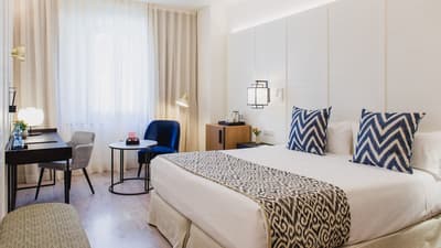 Prendre l’apéro en tête-à-tête avec un ange, ça ressemble à une chanson de Calogero, mais ça se passe au Molina Lario. On exagère à peine, tant les toits de la Cathédrale de Malaga sont proches. Mais pardon, on va peut-être un peu vite, parce qu’avant de grimper sur le rooftop, il faut qu’on vous parle du reste de l’hôtel. Idéalement situé au cœur de la ville, on peut tout faire à pied ; reste à choisir entre la visite des monuments historiques (et ils sont nombreux) ou le bain de soleil sur la plage de la Malagueta. Tout est tellement prêt que même ceux qui viennent pour bosser pourront aussi en profiter. Car le Molina Lario plaît autant aux voyageurs d’affaire qu’aux touristes : une décoration résolument moderne, un confort de première catégorie, une ambiance à la fois sophistiquée et décontractée, bref une entrée en matière idéale pour découvrir l’Andalousie. Mais le clou du spectacle reste sur le toit ! Parce que quand vous raconterez à vos potes que vous vous êtes baigné en apesanteur sur les toits de Malaga, on parie qu’ils vous prendront pour des mythos… N’oubliez pas de recharger vos smartphones !