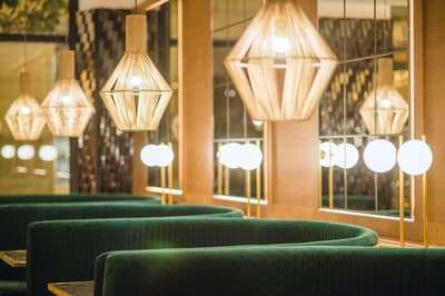 Vraiment chic, elle est très élégante. Elle mélange bois, métal et verre pour une déco vraiment design. De belles lampes complètent le tout et quelques touches de couleurs lui donnent du peps.