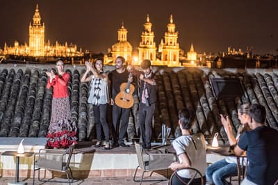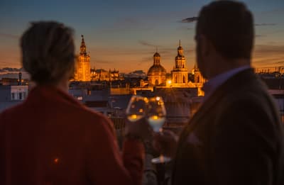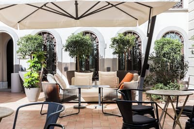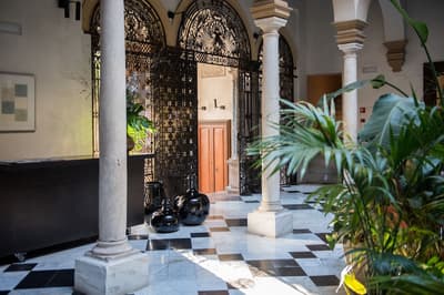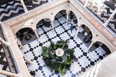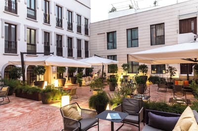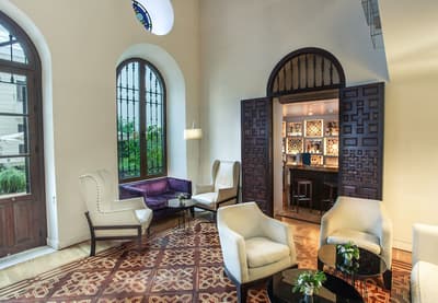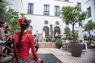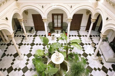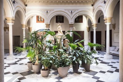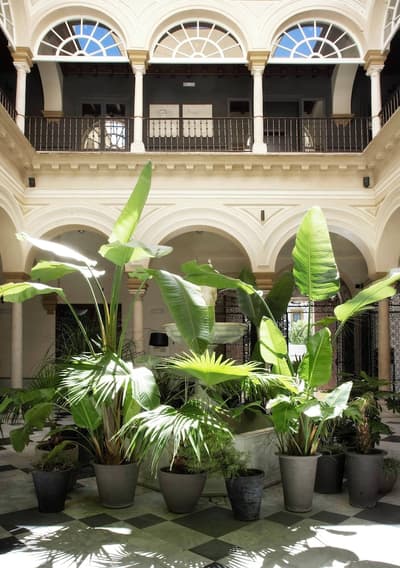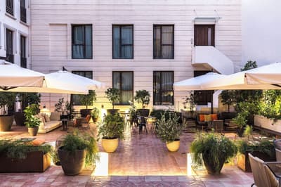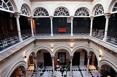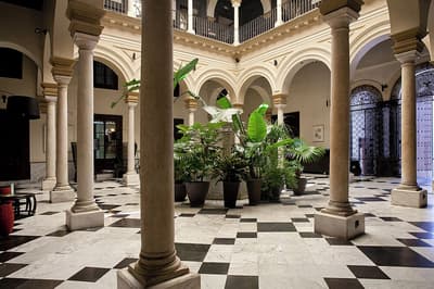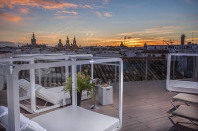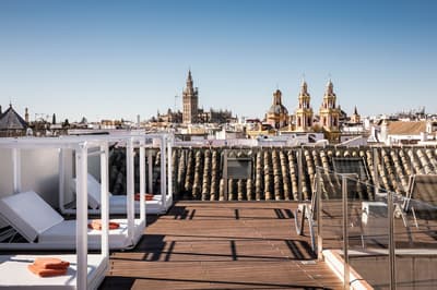 Mais qu’il est beau cet hôtel ! Situé à quelques dizaines de mètres du quartier historique de Santa Cruz, le Palacio de Villapanes est, comme son nom l’indique, un véritable palais du XVIIIe siècle, qui vous fera revivre des siècles d’histoire sévillane au travers de son architecture et de sa décoration. Tout y est, à commencer par les incontournables patios avec leurs colonnes de marbres et leurs fontaines. On raconte même que c’est dans l’une d’elles que les pèlerins de Saint-Jacques de Compostelle devaient tremper leurs mains avant leur départ de Séville. Ce qui est en revanche à peu près certain, c’est que les pèlerins n’ont pas du pouvoir profiter des somptueuses chambres entièrement restaurées, comme le reste de l’hôtel d’ailleurs, et encore moins du spa et du centre de fitness. Avec un peu de chance, peut-être ont-ils pu grimper jusque sur le toit et admirer la vue époustouflante sur la Casa de Pilatos et la cathédrale un peu plus loin, ce qu’on vous recommande aussi, d’autant que vous, à défaut d’un véritable 100 mètres nage libre, vous pourrez au moins faire un petit plouf dans la piscine ! En fin de journée, n’oubliez pas vos smartphones pour immortaliser le coucher de soleil sur les toits de Séville et repartir avec des étoiles plein les yeux…