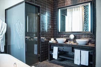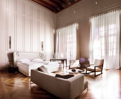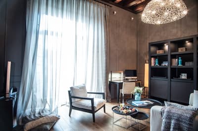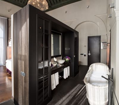 Chacune des 5 suites ont un style unique et un design avant-gardiste avec une décoration allant du contemporain au style vintage; plafonds avec poutres apparentes, grandes portes en bois sculptés à la main, murs tapissés de marbre et d’autres éléments de décoration qui vous émerveilleront. La salle de bains est équipée d'une douche avec trois types de jets et d’une baignoire de grande capacité au design signé par Philippe Starck. Le tout dans une ambiance royale !