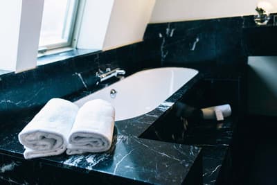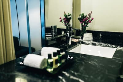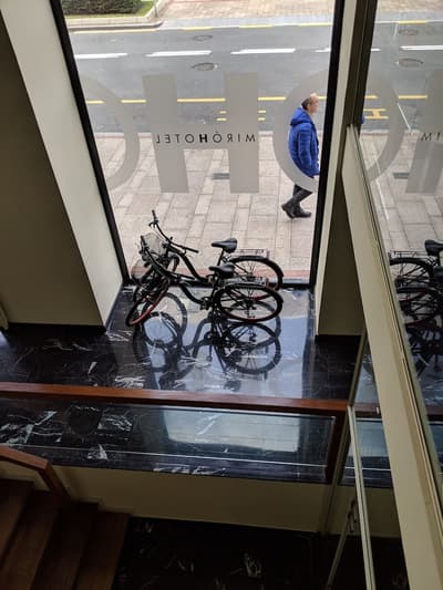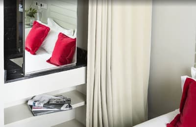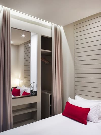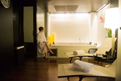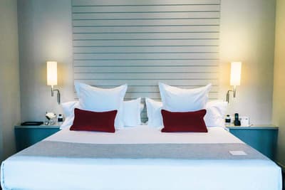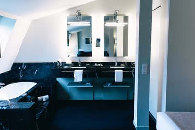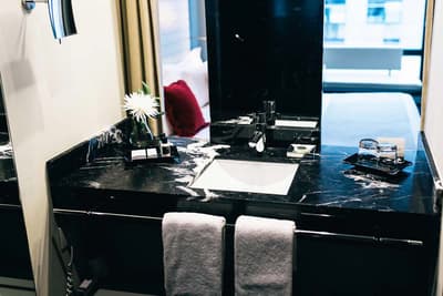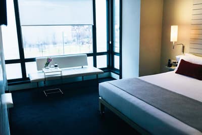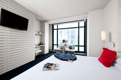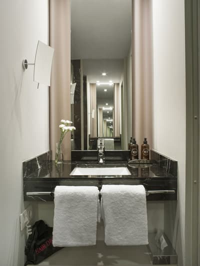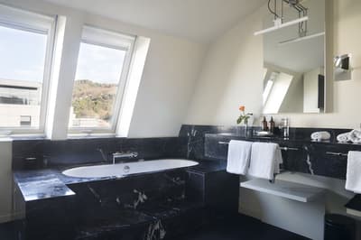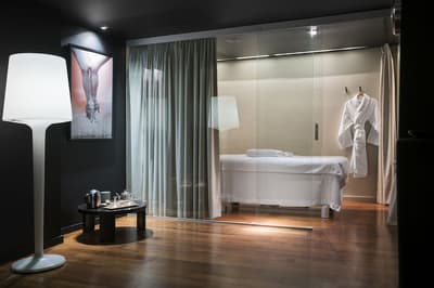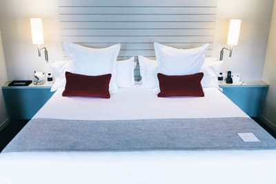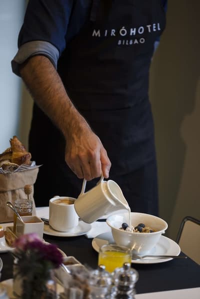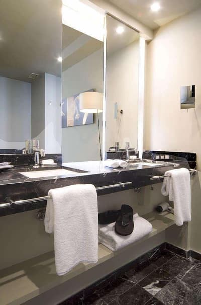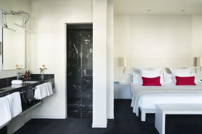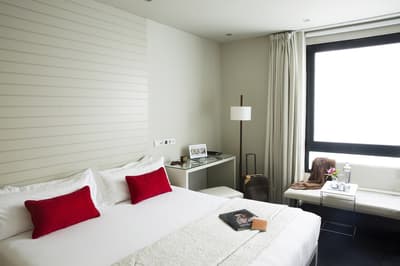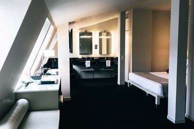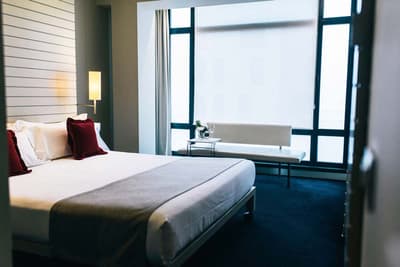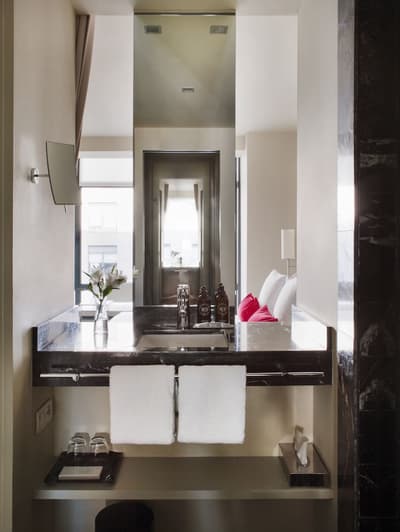 Amateurs d’art contemporain, vous allez A-DO-RER ! Vous seuls pourrez donner votre avis sur la collection de photographies éparpillées au sein de l’hôtel Miró. Et vous seuls feuilletterez les livres d’art de la bibliothèque avec un œil expert, sans devoir faire semblant de vous y connaître. En vrai, tout le monde appréciera le cadre ultra design de ce bel hôtel situé à deux pas du musée Guggenheim et du musée des beaux-arts de Bilbao. C’est un lieu où l’on se sent bien et qui dégage une certaine sérénité ! C’est peut-être grâce aux coins salon dotés de fauteuils en cuir vieilli, des bonbons et du café en libre-service et à volonté, de l’honesty bar ou encore du personnel aux petits soins. Côté déco, on adore le savant mélange entre teintes douces et couleurs, et les touches florales/végétales ici et là. On craque pour toutes les chambres, hyper minimalistes et bien aménagées, où l’on peut jouer sur la lumière et les volumes avec le rideau entre la salle de bain et le coin nuit, mais aussi les stores ingénieux des fenêtres. Avec un petit coup de cœur pour la bougie Miró Hotel disposée sur le rebord de la baignoire de la penthouse… Et un gros faible pour les hébergements avec vue sur le célèbre musée d’art moderne de la ville.