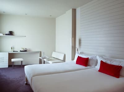 Agréable et confortable, cette belle chambre profite d’un cadre serein. Sa grande fenêtre vitrée profite d’une vue merveilleuse sur la ville et le Guggenheim. Plus spacieuse, elle peut accueillir un lit supplémentaire pour un enfant. Salle de bain chic avec douche à effet de pluie.