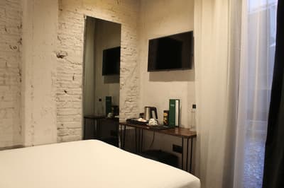 Top ! Le balcon offre une vue merveilleuse sur la rue pétillante de Bilbao. Bien aménagée, elle procure une sensation d’espace. Elle accommode un grand lit et dispose d'un petit bureau. Salle de bain chic.
