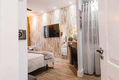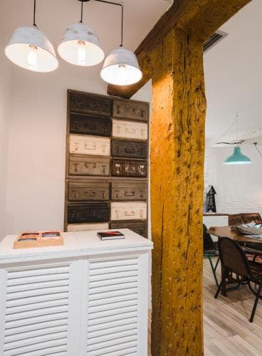 Envie de dormir dans une pension de Bilbao, mais avec un petit truc en plus ? Le Caravan Cinema vous accueille pour une immersion derrière l’écran et dans les coulisses des plus grands films. En guise de descriptions des appartements et des chambres : une bio d’un célèbre réalisateur de cinéma. Si on hésite à aller prendre sa douche dans la salle de bain d’Hitchcock, on se met tout de suite à l’aise dans l’appart new-yorkais de Woody Allen. Pour le logement Spielberg, veuillez prévoir votre chapeau d’Indiana Jones ou, à défaut, un bon roman d’aventures à lire pendant la grasse matinée du dimanche ! Tous les hébergements sont équipés d’une smart TV por su puesto, car la déco incite à re-visionner ses classiques. Même si c’est à 1 h du mat après avoir parcouru Bilbao en long, en large et en travers… Qui dit pension, dit que vous n’aurez personne de collé à vos basques à longueur de journée ! Ça peut avoir ses avantages, comme ses inconvénients. En tout cas, une fois installé, vous ferez vite comme chez vous… Un petit café le matin, une séance de cinéma le soir… Pas de petit déjeuner, mais une machine Nespresso et une kitchenette dans certains logements. Au cœur de la vieille ville, c’est le pied-à-terre parfait pour un séjour en toute indépendance et à la carte !