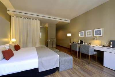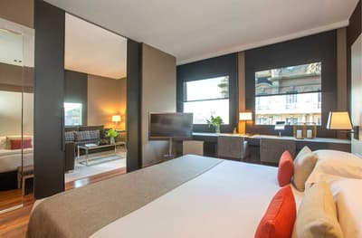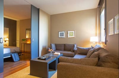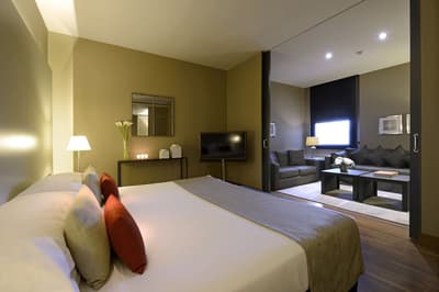 Pouvant accueillir confortablement deux personnes, elle profite d’un bel espace chaleureux et accueillant, d’où vous pourrez vous détendre et découvrir les rues de Barcelone à travers la simplicité et la fonctionnalité. À noter que tous les clients bénéficient d’un accès gratuit à la suite thermale de 12 h à 20 h.