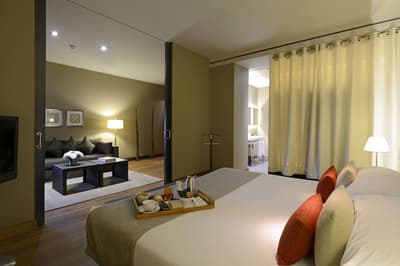 Située dans un cadre idyllique, vous pourrez contempler la muraille romaine et le patrimoine de Barcelone grâce à de grandes fenêtres qui offrent une vue exceptionnelle et laissent pénétrer une belle lumière naturelle. À noter que tous les clients bénéficient d’un accès gratuit à la suite thermale de 12 h à 20 h et les clients séjournant dans une suite peuvent également la réserver en privé en dehors des heures d’ouverture.