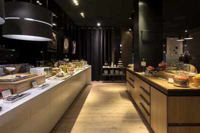 Le Grand Hotel Central, c’est le grand luxe ! Et en premier lieu, le luxe de pouvoir se rafraîchir en plein été sur un rooftop de malade avec infinity pool et panoramas à couper le souffle. Instagrammeurs, sortez votre outil de travail dès l’arrivée. Objectif : transformer la piscine en mer ou en lac d’eau turquoise. Ça devrait être dans vos cordes. Ou alors, trouver l’angle improbable pour un selfie, demander à un autre hôte de vous prendre en photo en faisant votre position de yoga préférée… Avec un minimum de discrétion tout de même, car ici, c’est chic ! On ne fait pas de grands cris en plongeant dans la piscine ou en voyant arriver son cocktail multicolore le soir au SkyBar. Qui dit 5 étoiles, dit service assuré. Un verre de cava par ci, un sourire par là, ça n’arrête pas ! À l’intérieur de l’hôtel, tout est design et élégant, mais pas du tout ennuyant. C’est cosy, c’est moelleux, c’est chaleureux. Les luminaires sont cuivrés ou ambrés, ou parfois d’une grande simplicité. Quelques touches vintage aussi : étagères remplies de vieux livres, malles en guise de table et bien sûr moulures au plafond, car vous êtes dans un bâtiment historique. C’est tellement rassurant ici que vous rechignerez même à sortir le soir, préférant rester sur votre promontoire pour observer la vie nocturne se réveiller à Barcelone, quand tout s’illumine autour de vous.