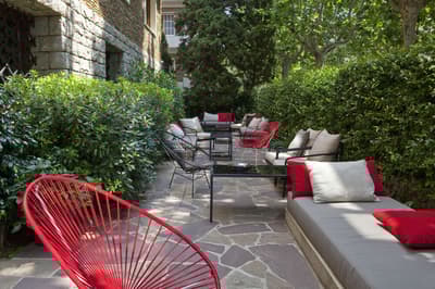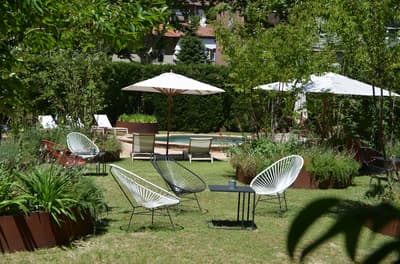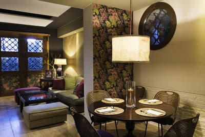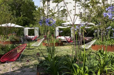 Imaginez-vous dans un fauteuil en cuir vieilli, au coin du feu, un verre de vin posé sur la table basse, un plaid sur les genoux, et un livre entre les mains. Dans le salon de l’hôtel Primero Primera, vous prendrez vite vos aises ! La décoration est tout simplement à tomber, sophistiquée, vintage, chaleureuse, digne d’un club privé british. Des couleurs et des motifs, entre papier peint fleuri et tapis oriental, charment encore plus les hôtes. Les grilles en fer forgées aux fenêtres et les patios intimes, illuminés le soir venu, vous plongeront dans le passé de cette ancienne résidence. La famille propriétaire l’occupa dès 1955, du moins le premier étage comme le laisse comprendre le nom « Primero Primera », puis en fit un hôtel en 2011 ! Comme à la maison, vous pourrez profiter du jardin bucolique, des bains de soleil et de la piscine après une journée active. Vous préparerez votre digestif vous-même chaque soir à l’honesty bar, et flânerez dans l’hôtel en admirant les photos souvenirs aux murs. Le Primero Primera, c’est une véritable adresse secrète, cachée dans le quartier de Tres Torres. Sur les hauteurs de Barcelone, un petit peu à l’écart, légèrement à l’abri de l’agitation de la ville : c’est l’idéal !